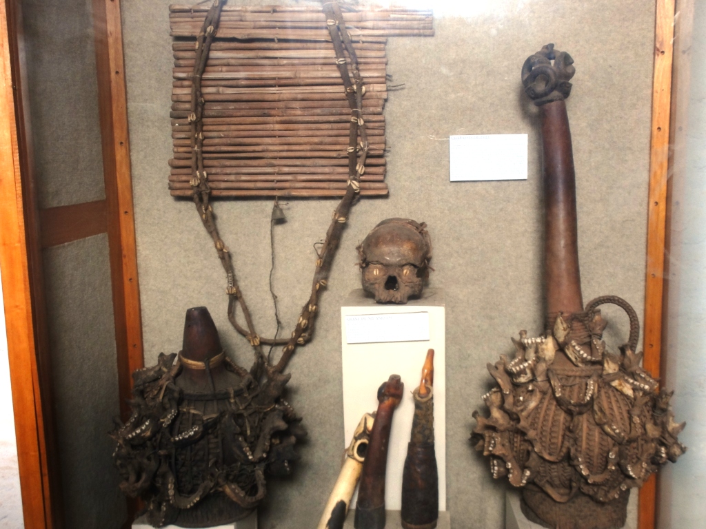Rangés dans un autre espace du musée de Foumban, des crânes d’hippopotame et de buffle retiennent l’attention d’un reporter. « Ce sont des vrais ? », demande t-il. Oui, rétorque le guide. Il s’agit en fait de trophées de guerre. Et le musée en compte plusieurs du genre : un costume orné de touffes de cheveux d’ennemis décapités, une calebasse décorée de crânes d’ennemis tués lors des combats, entre autres. L’histoire enseigne que les rois, pour faire montre de leur puissance, se servent desdits crânes comme verre, pour se désaltérer. A voir le nombre impressionnant de trophées de guerre que compte le musée, on comprend que le peuple Bamoun a livré plusieurs batailles sanglantes. Au milieu de tous ces crânes, il y a celui de Nji Ankuem.